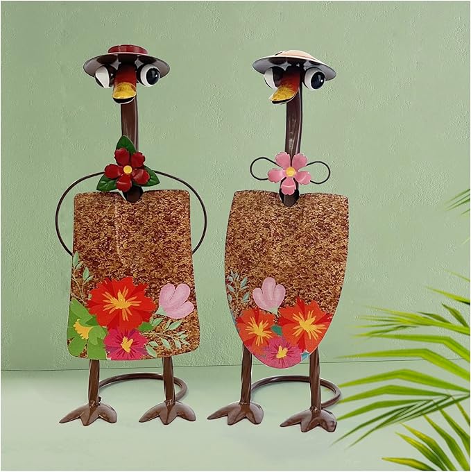 ✔️The Metal Duck Couple were creatively made using recycled quality metal spatulas, onto which I painted floral details. Each garden duck decoration is coated with an anti-rust coating to ensure its longevity, even in various weather conditions such as rain, sun and wind.