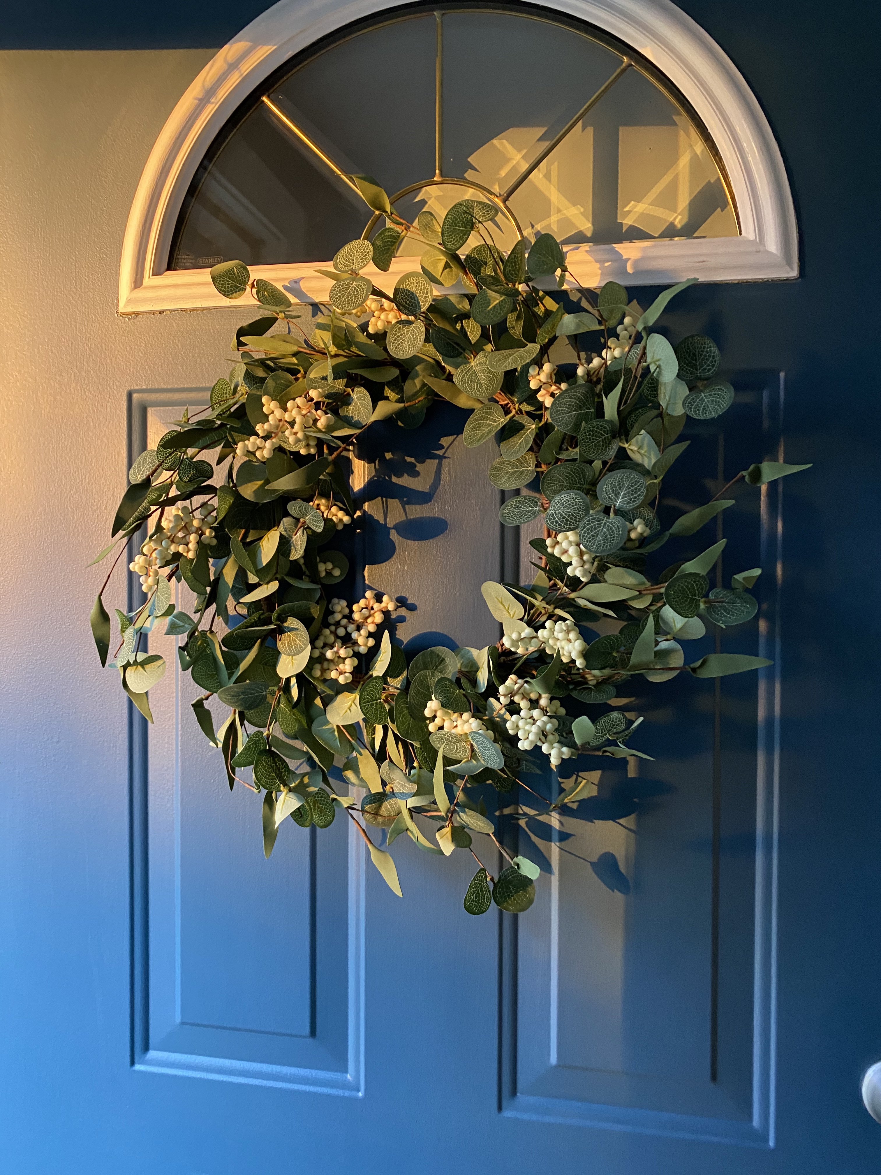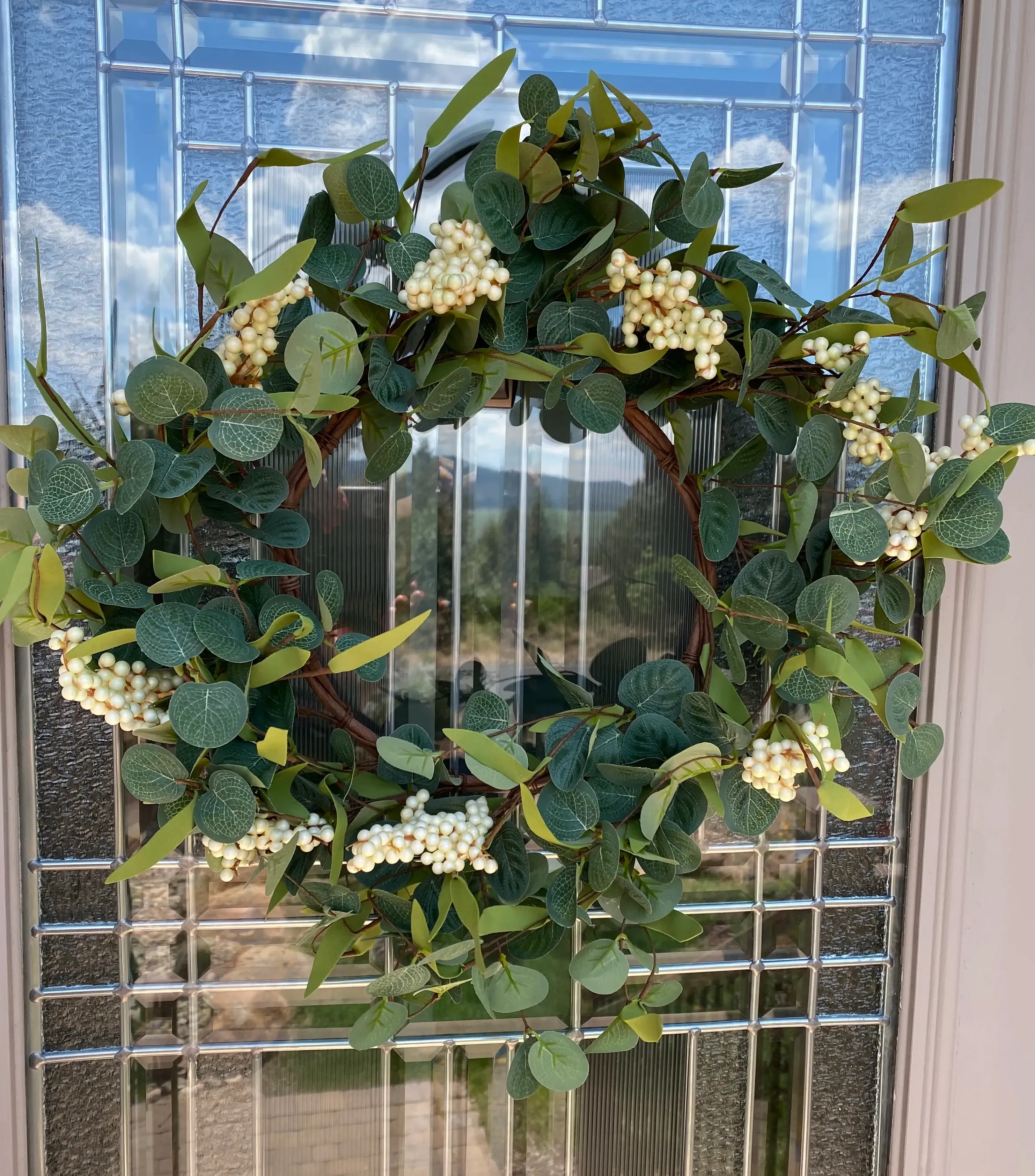 【Lifelike】: This eucalyptus wreath is made of 3 different colored leaves, additionally dotted with white berries, making it look more vivid, lifelike, and does not require a lot of effort to manage. It blooms continuously and never fades.