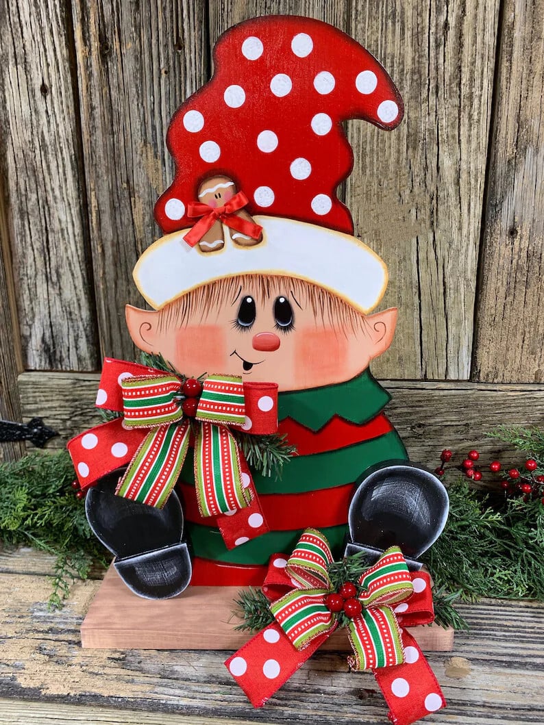 😊This chubby little elf has been eating way too many Gingerbread cookies...except the one hiding in the rim of his hat!