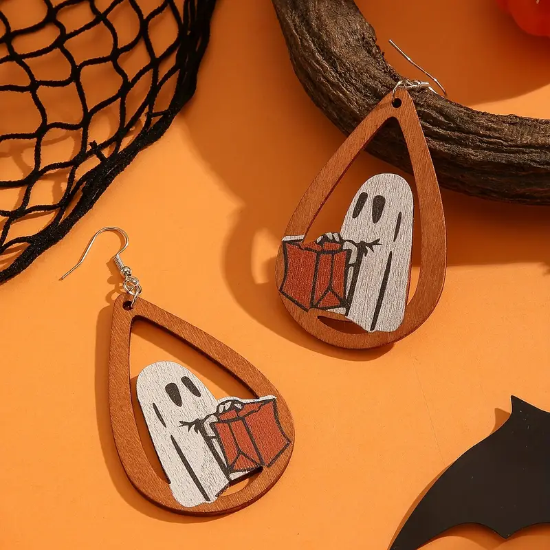 🎃Halloween Wooden Earrings|Ghost Black Cat Pumpkin|Wooden Art